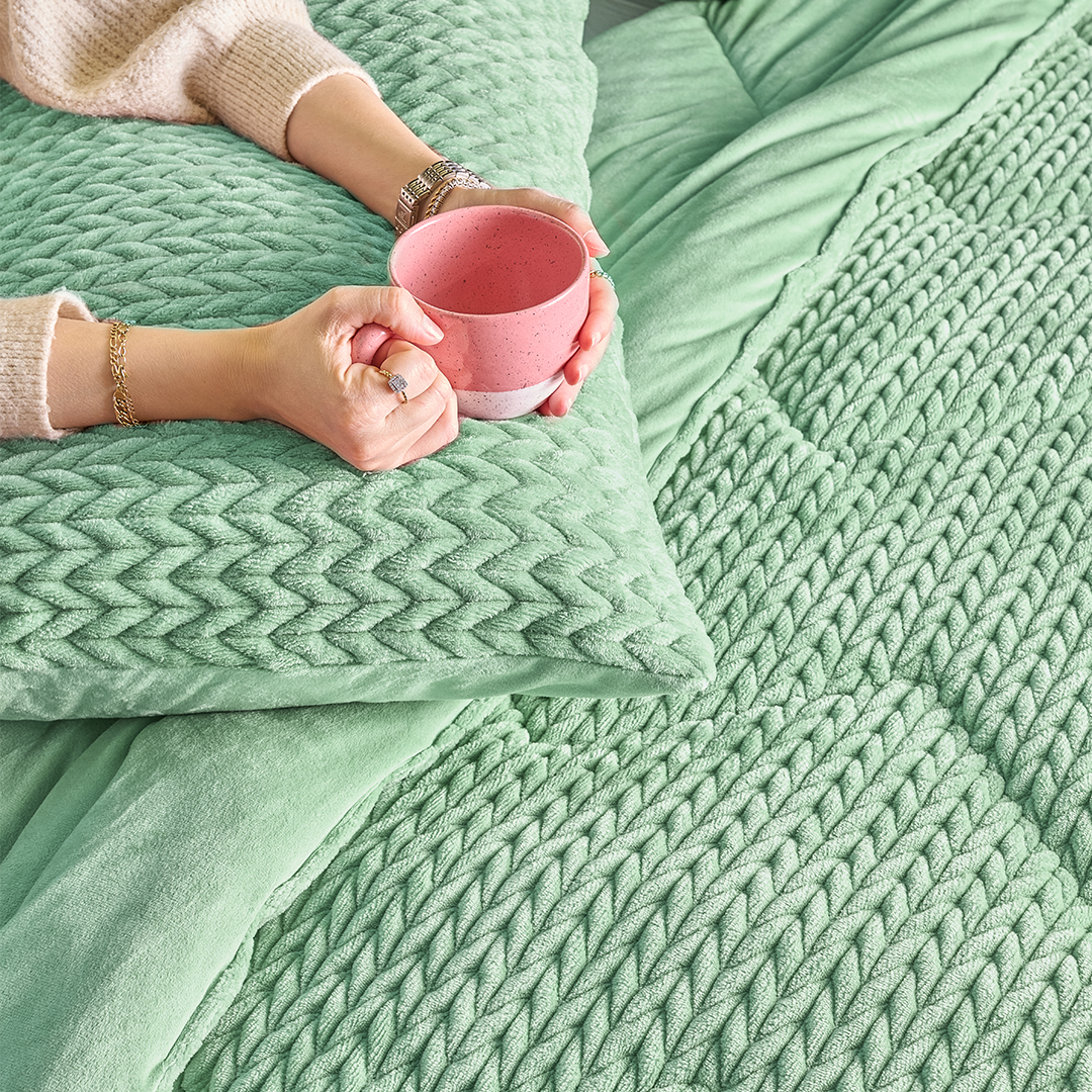 وصف: استمتع بأقصى درجات الراحة مع مجموعة أغطية السرير من الفرو الصناعي. ناعمة، فخمة، ولا تقاوم، هذه الأغطية الفاخرة تضيف الدفء والأناقة إلى غرفة نومك، مع أغطية وسائد متطابقة للحصول على مظهر كامل وأنيق.