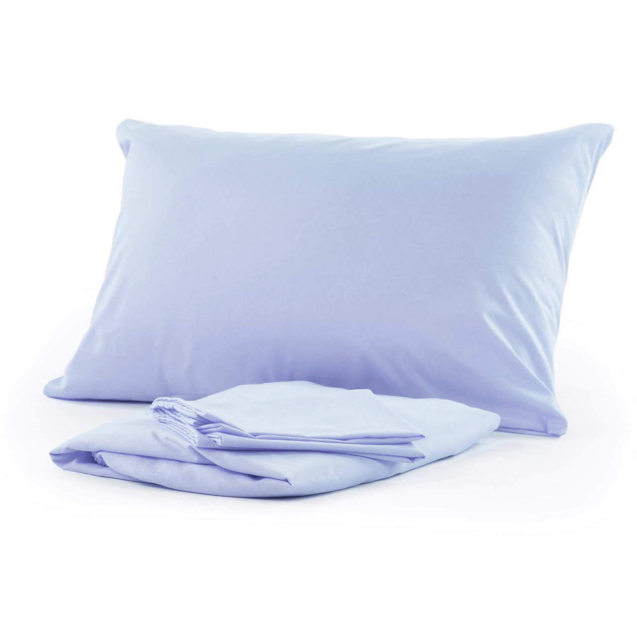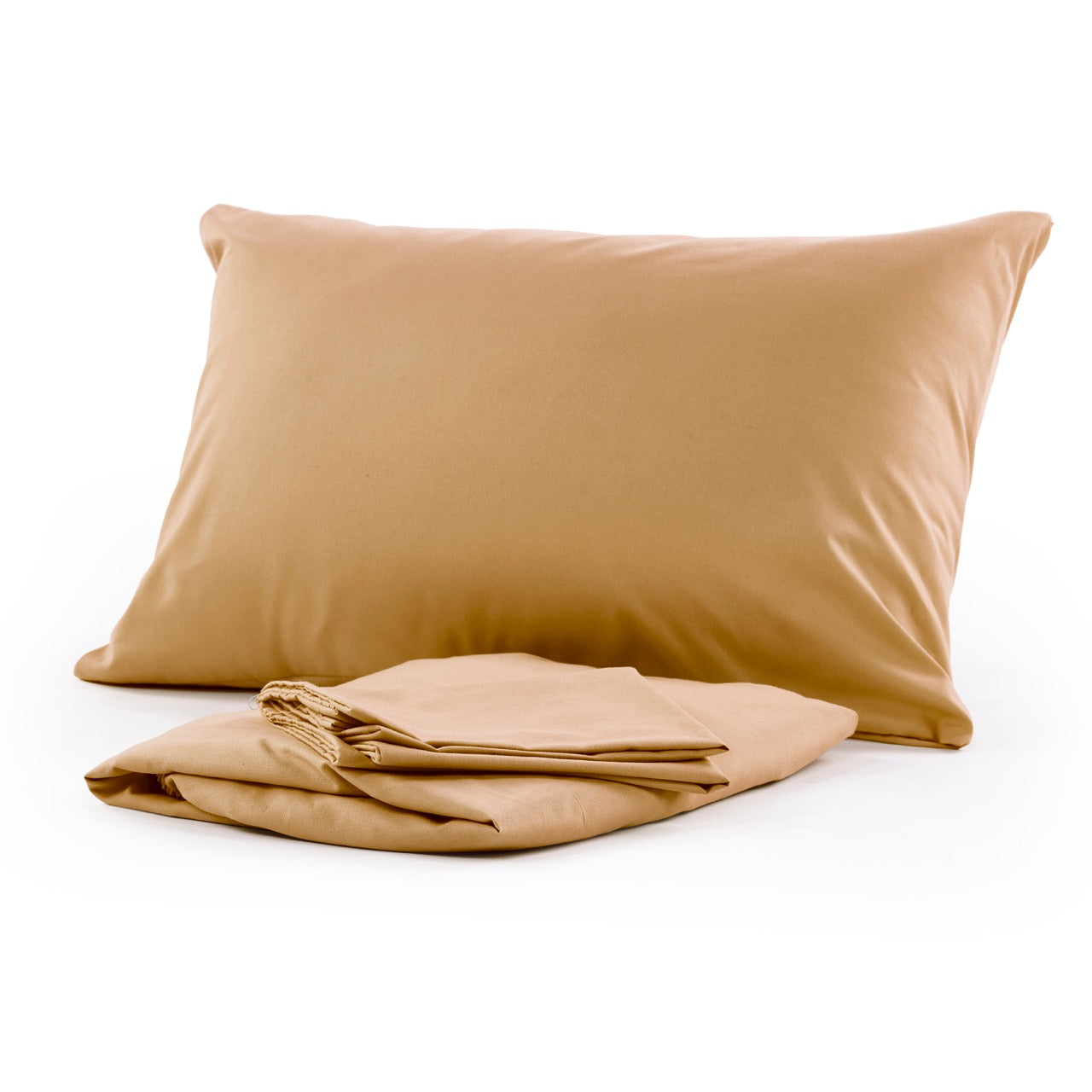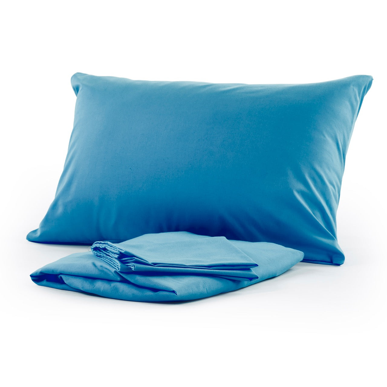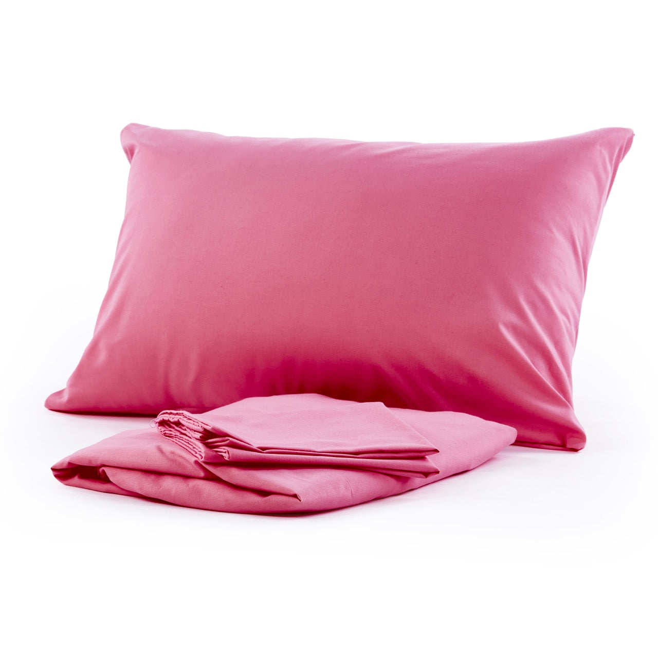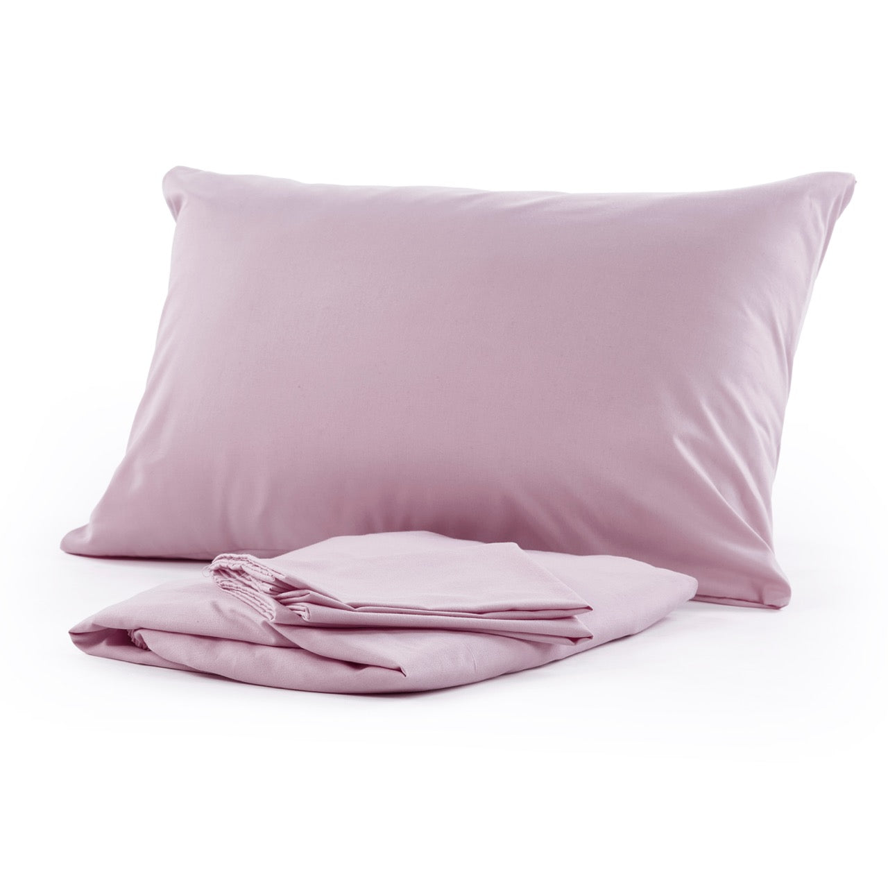 Description: 1 plain fitted sheet- 2 plain pillowcases (50cm x 70cm). Our Fitted Cotton Bed Sheet Set of fine-threaded, closely woven cotton, fits mattresses up to 30 cm thick. A fitted sheet has elastic edging all around that makes it stay in place on the bed. This way, you won't be disturbed by a tangled sheet at night.