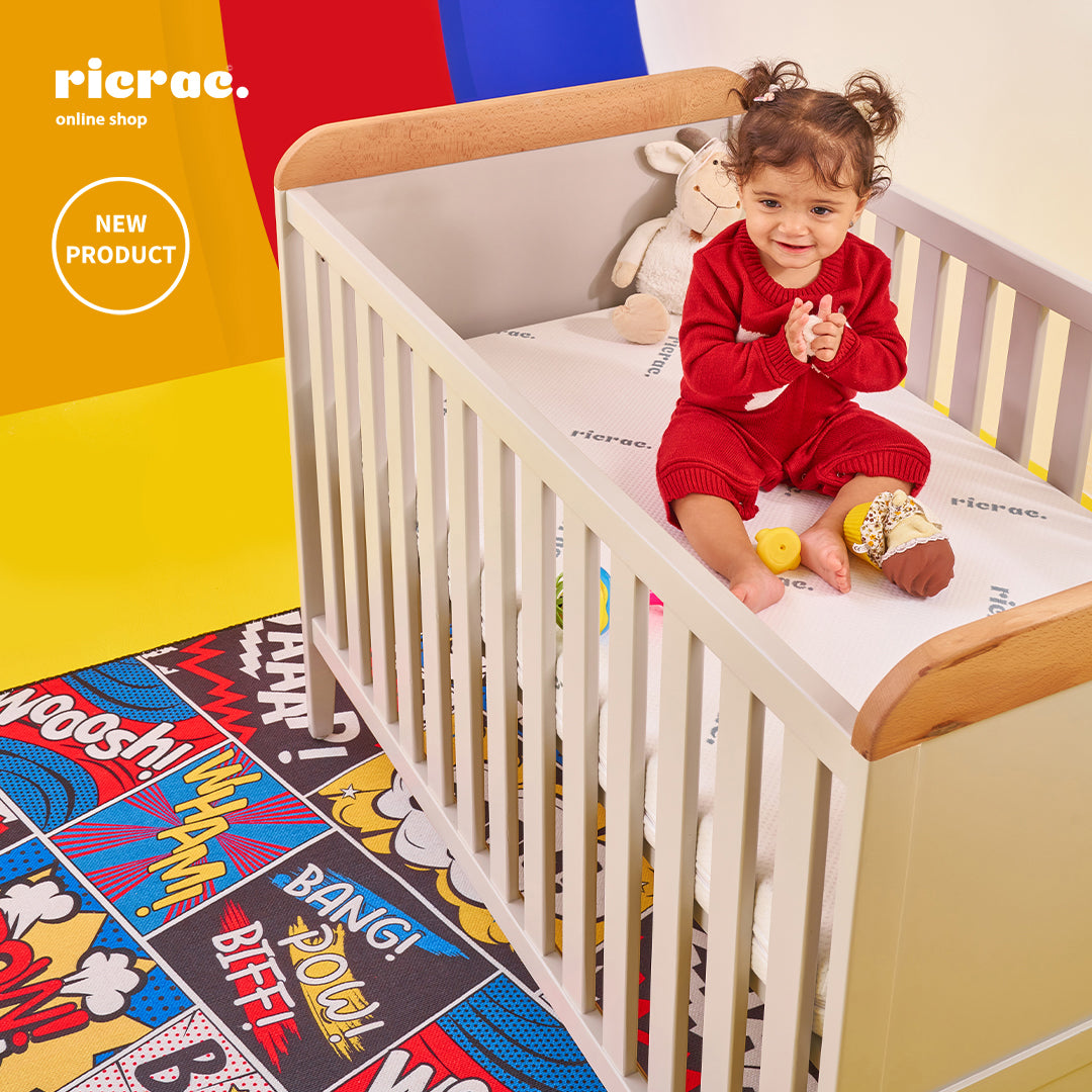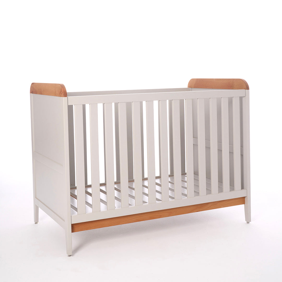 Description: Ricrac baby cot bed showcases a Vigorous design, enriched with elegant details along the cornice and plinth.
