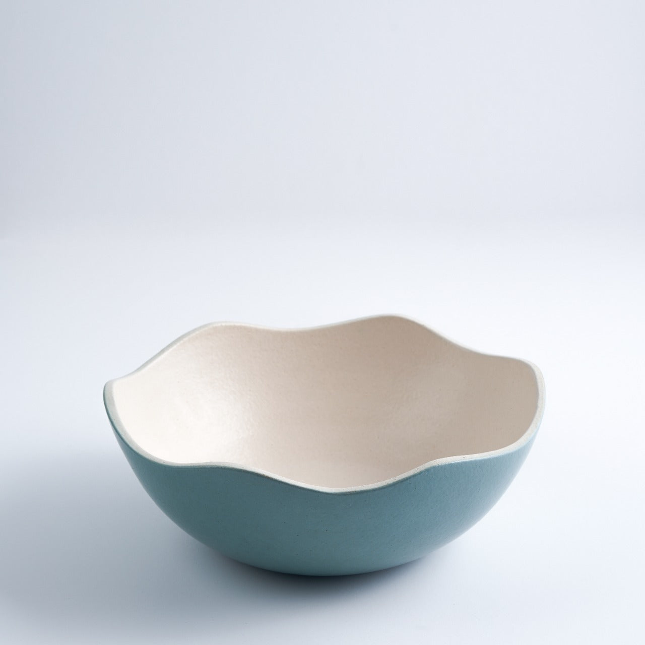 Description: Large wavy-edge Bowl, finished with different colors from inside and outside adding character and earthiness to the bowl. Available in 2 Colors. All our products are handmade. Slight variation in shape or design application can be expected. Color may vary slightly due to positioning in the kiln.
