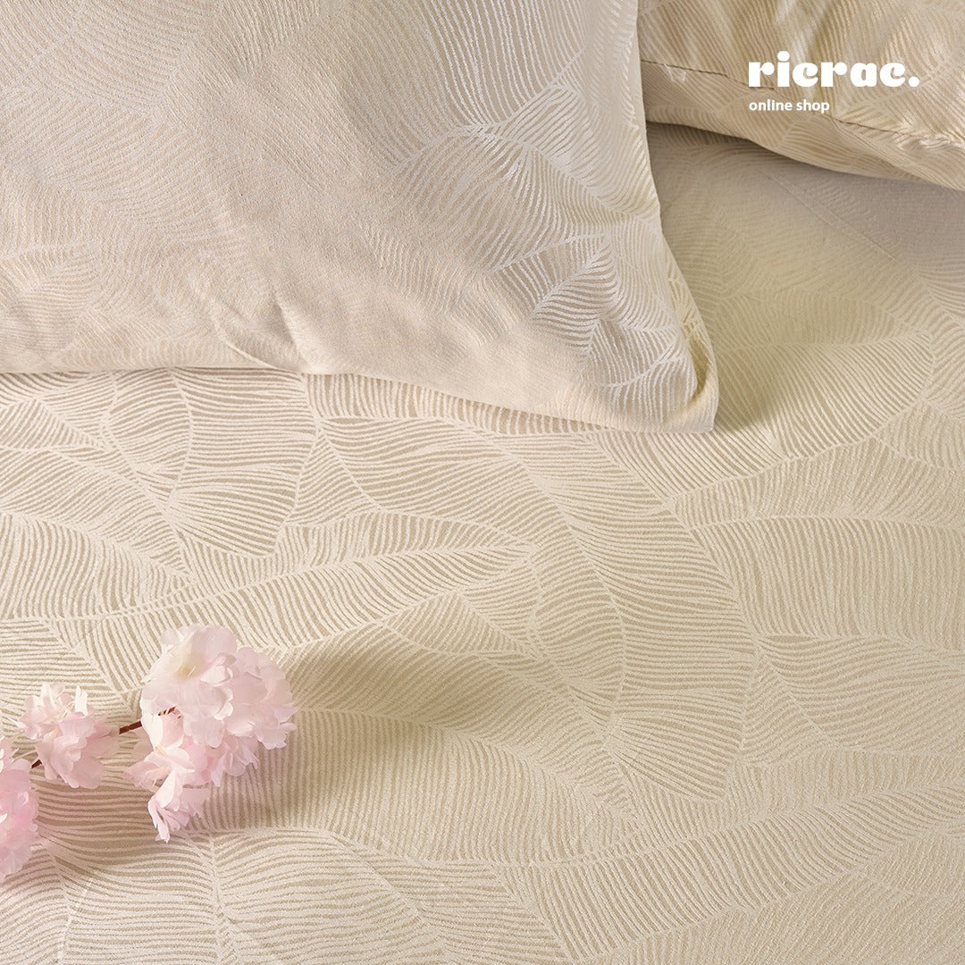 Jacquard Poly Cotton- TC200- Leaves Bed Sheet Set with 2 Pillow cases