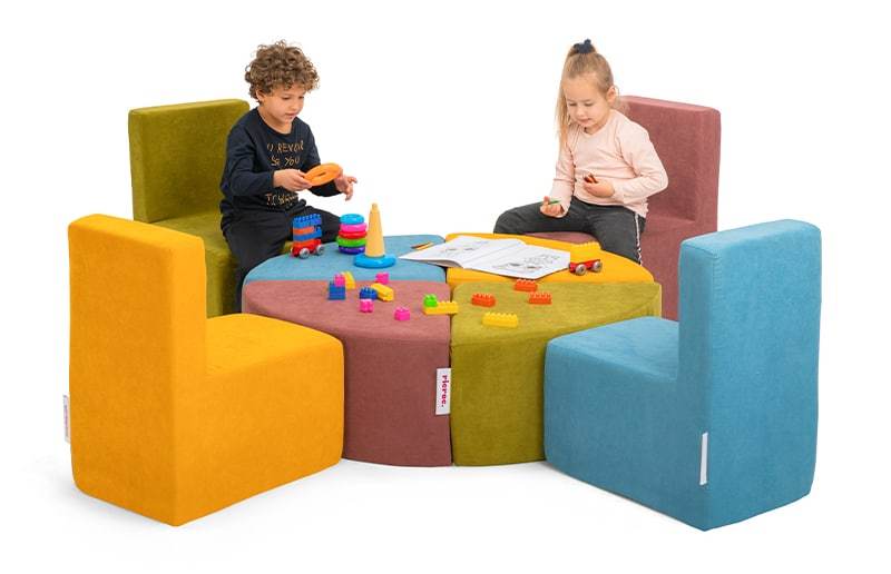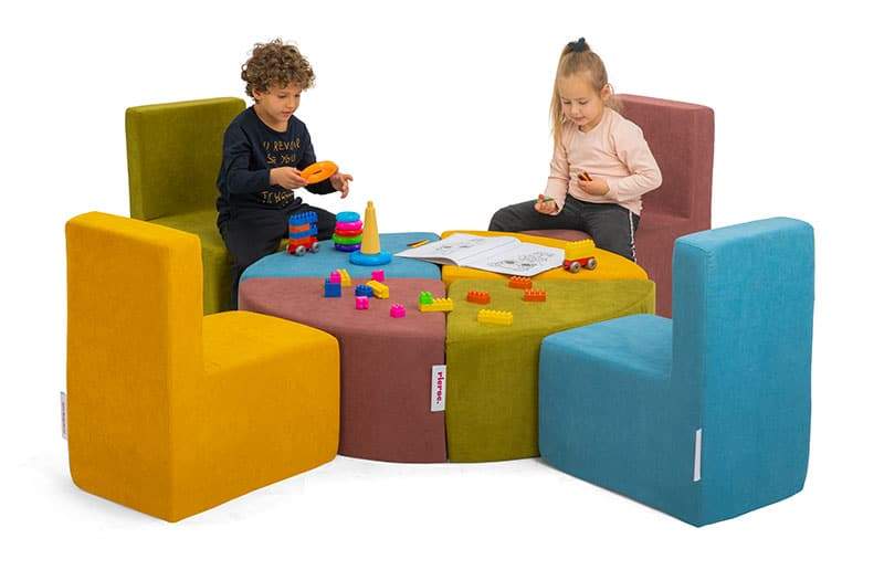 Description: Kids Multiactivity Corner | Having a cozy and comfortable expandable foam corner. It can be back to back seating or a table and 4 chairs for social times.
