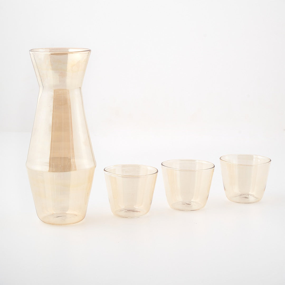 Rekolo- Hand Blown Glass Bottle with 3 Cups